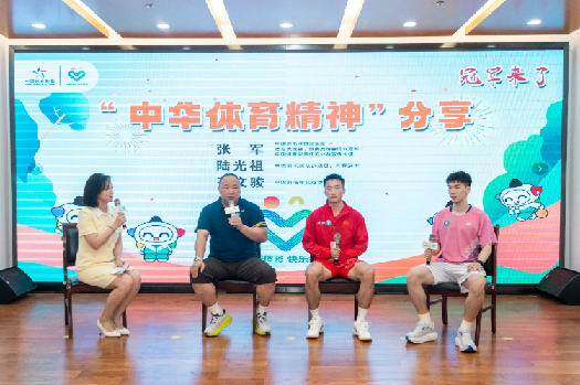 捐赠仪式上,张军、范金华共同为“公益体彩 快乐操场”揭牌。张军与陆光祖、孙文骏,和大家分享了他们的训练备战体会及对“中华体育精神”的感悟。随后,在江苏体彩捐赠的全新羽毛球垫上,张军、陆光祖、孙文骏为天爱儿童康复中心的学生送上了一堂国家队羽毛球公益课,在他们耐心细致的讲解、示范下,孩子们初步掌握了羽毛球运动技巧。
