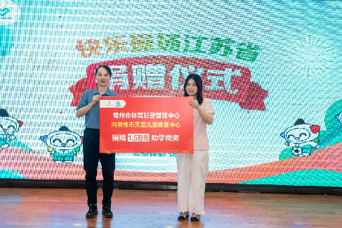 常州市天爱儿童康复中心是一家主要面向孤独症儿童的公益性康复教育中心,此次,江苏省体育彩票管理中心向该校捐赠价值5万元的羽毛球运动器材,常州市体育彩票管理中心也向该校捐赠价值1.5万元的助学物资。常州市天爱儿童康复中心校长杨建军表示,体育运动有助于提高孤独症儿童专注力,增强他们的认知,提升学习能力,学校将管好用好体彩捐赠物资,带给孩子们更好疗愈。
