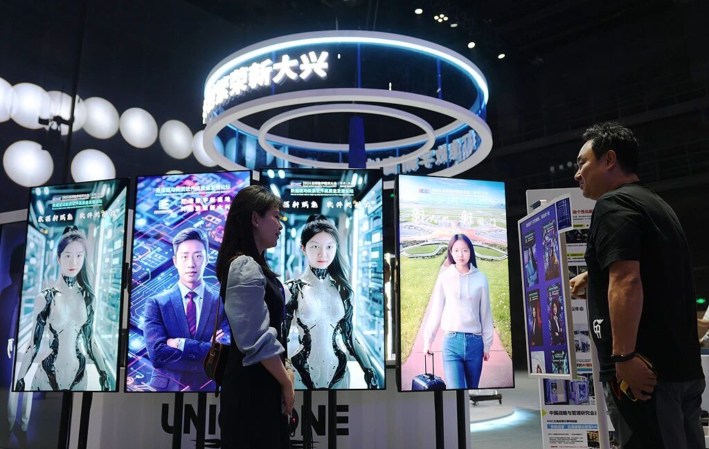 2024年7月4日,数据驱动新质软件高质量发展论坛在北京大兴经济开发区举办,一名观众在现场体验制作自己形象的数字人